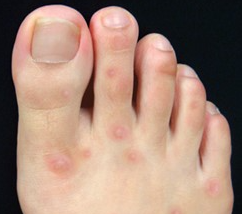 - 초기 : 2~3일 손, 발 및 입 안 수포발생, 발열증세 등