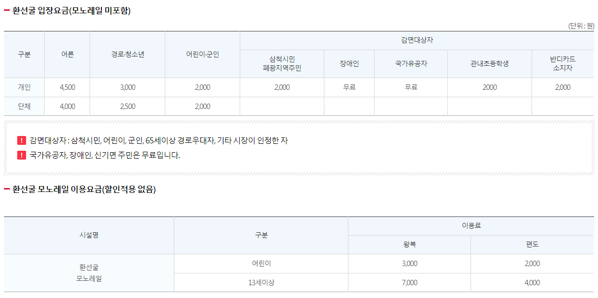 - 주소 : 강원도 삼척시 신기면 환선로 800 (대이동굴관광센터)